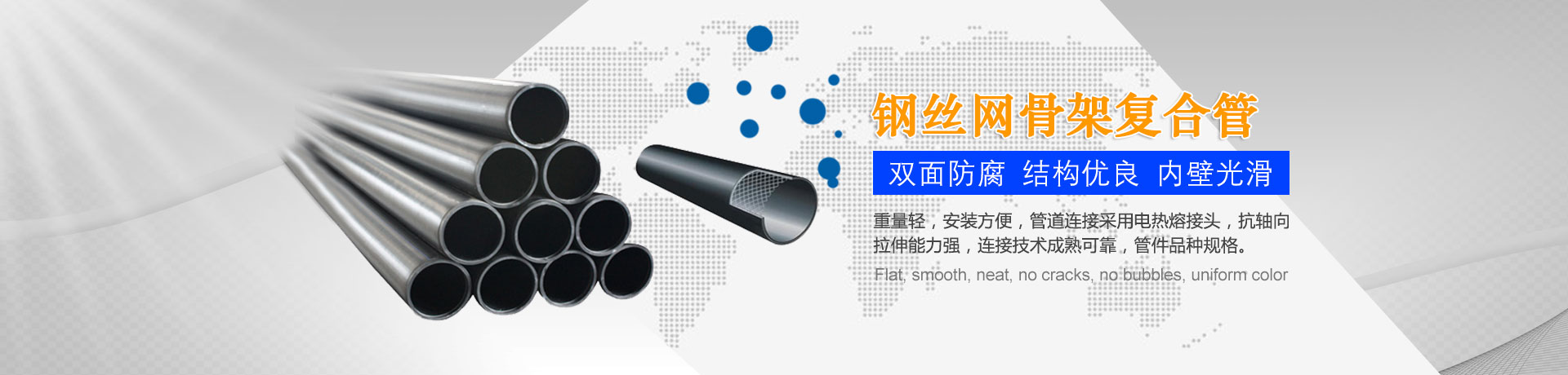我們主要生產(chǎn)銷售:鋼絲網(wǎng)骨架復(fù)合管、鋼絲網(wǎng)骨架聚乙烯復(fù)合管、孔網(wǎng)鋼帶聚乙烯復(fù)合管、鋼骨架聚乙烯塑料復(fù)合管、電熔管件、HDPE中空壁纏繞管、HDPE內(nèi)肋增強(qiáng)螺旋波紋管、HDPE結(jié)構(gòu)壁增強(qiáng)B型管等一系列產(chǎn)品。復(fù)合管以其特有的防腐蝕、耐磨、耐高溫、抗嚴(yán)寒、耐壓、抗蠕變、穩(wěn)定性好、安裝方便等特點(diǎn),逐步取代各類金屬管件和塑料管件,被應(yīng)用于消防、石油、化工、供水、采礦、海水輸送等領(lǐng)域...